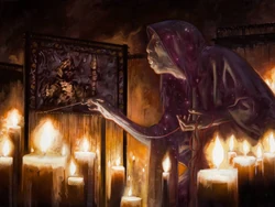 For a moment she wondered if perhaps one of the threads could be saved to continue its winding journey, but the clever technique her sister had employed in weaving these two together bound their destinies so closely that attempts to end just one of them were unwise. One without the other could weaken the tapestry, leaving it prone to irreparable tears. Although she and her sisters controlled many things in the destinies of all in Theros — even at times the gods themselves — some rules must never, ever be broken.