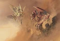 Time Spiral fat pack panorama by Aleksi Briclot featuring Bogardan Hellkite vs. Serra Avenger.