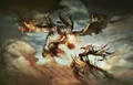 Tenth Edition fat pack panorama by Kev Walker featuring two Serra Angels taking on the Lord of the Pit).