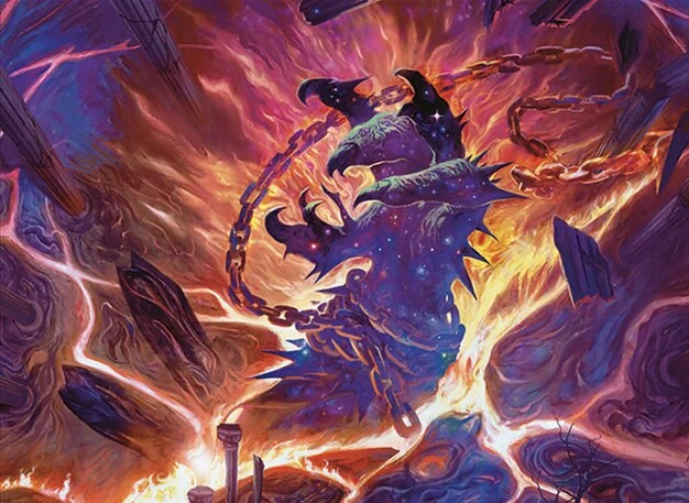 As each citizen awoke with a scream, the city itself dreamt, while Ashiok nursed its collective nightmares into being, commanding the new god to arise and awaken. There was another world to grasp. And, so Cacophony, the god of cities, arose. It looked around at the little humans clinging to its body, hairy ape creatures that infested it everywhere. It saw their hunger and their fear, and it was happy. Cacophony reached out with its newly formed hands and grabbed thousands of the hairy ape creatures, crushing them and flinging their corpses to the ground below. It would not destroy all of the apes, just some, just enough for the survivors to live their little ape lives in agony and fear.