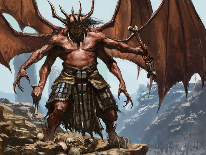 These large demons wear the bones of their victims as accessories. These demons collect the bones (teeth, skulls, etc.) of their prey and sometimes forge the bones into weaponry.