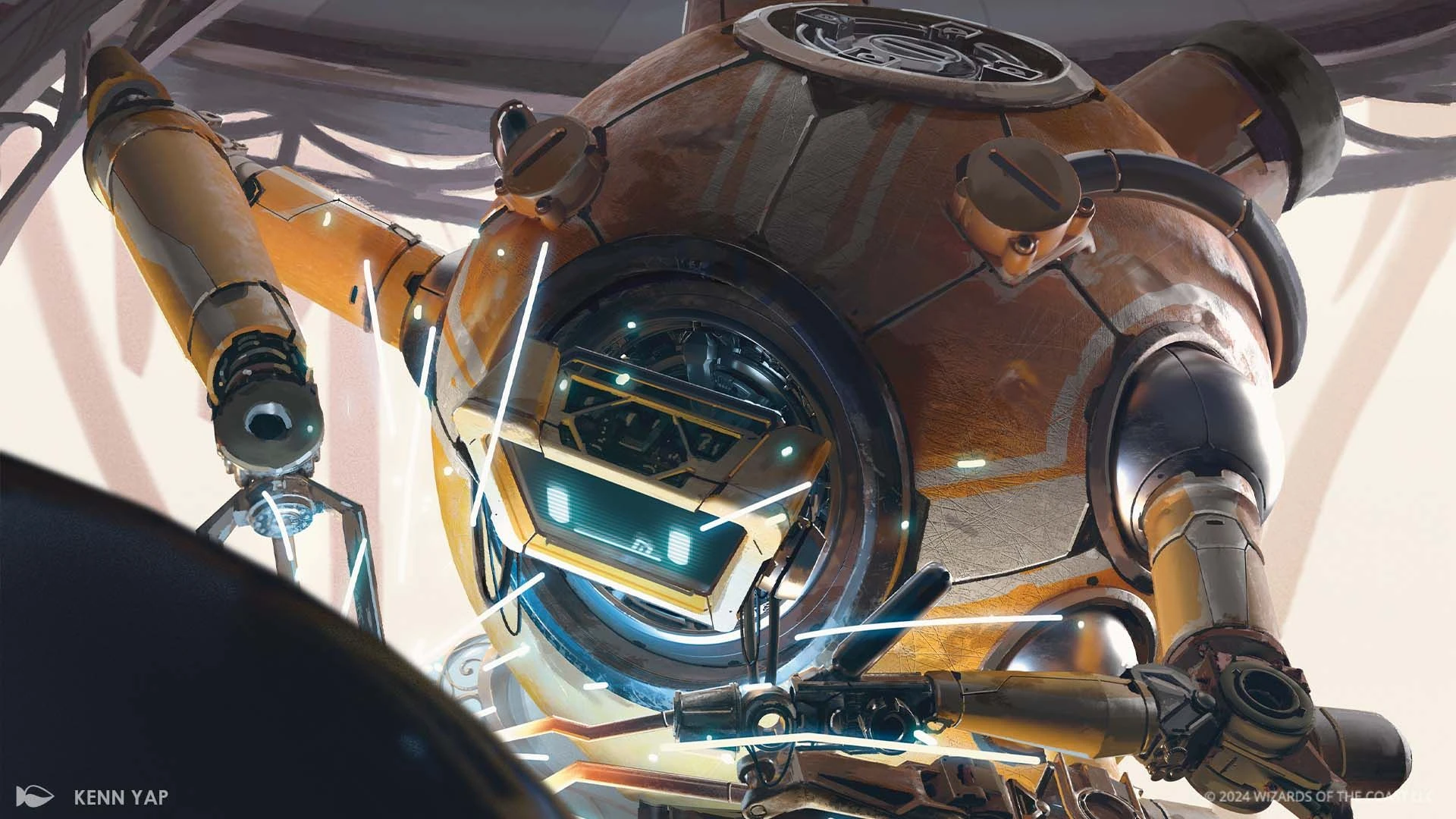 The Guidelight Voyagers are an uncanny collection of automatons captained and coordinated by a single mind: a machine that calls itself "Mendicant Core".[1] The automatons of the Guidelight work like limbs of vast intelligence, united together in the singular purpose to transit the planes of the Multiverse in a repeatable method, varying their approach with rapidity to introduce new variables to their controllable baseline in the hopes of finding a way back to their homeworld. The Guidelight Voyagers can fuse with their racing vehicles to become greater than the sum of their parts.[2]