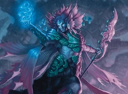A leader among the vanguard of the River Heralds exploration corps below Ixalan's surface, Hakbal was one of the first to delve into the depths and is most familiar with the hazards and curiosities of the world's caverns.[1] During the Phyrexian Invasion, the River Heralds fought a valiant but prudent defensive campaign. Unable to defeat the invaders on the field, they elected to seek ancient paths underground, where the vast darkness provided countless places for the Heralds to hide. Hakbal, using his magic and wits, led the first group down into the dark caverns. Others followed his lead, and the Heralds found safety underground, avoiding the worst of the Invasion and preserving Ixalan's long memory from the Phyrexians' grasp.