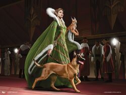 Jinnie is the adopted daughter and right hand of Jetmir, the boss of the Cabaretti on New Capenna.[1][2] She has two familiars - a cat named Muri and a dog named Regis.[3]