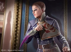 Lucia Covi is an assassin in the service of Marchesa d'Amati, the Queen of the High City of Paliano on the plane of Fiora.[1] Marchesa's assassins are known as the Thorns of the Queen or Thorns of the Black Rose.