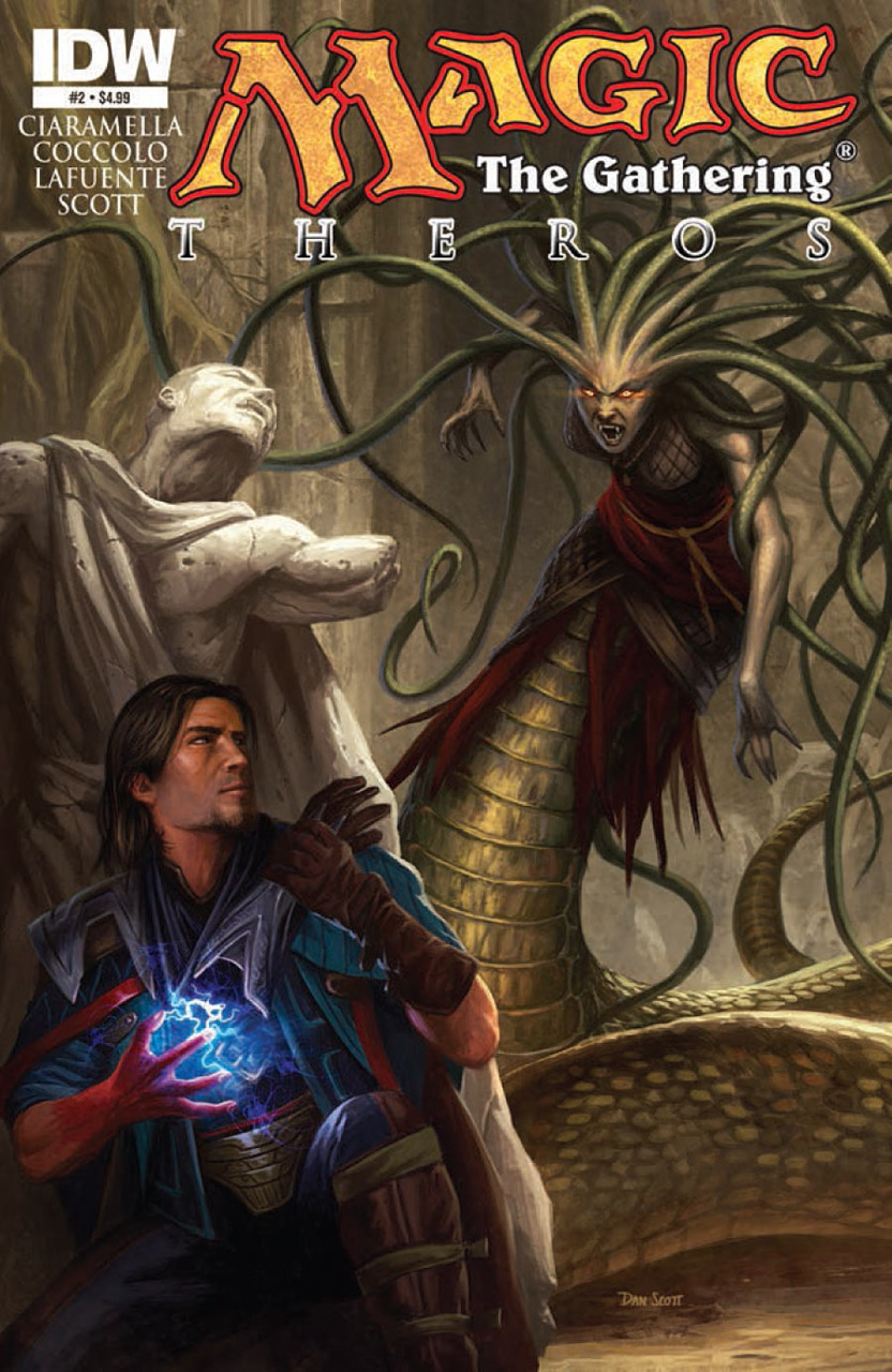 Magic: The Gathering - Theros is a paperback published by IDW Publishing in 2014, assembling 5 comics which were published at the end of 2013 and the beginning of 2014. The book continues the exploits of the planeswalker thief Dack Fayden, a Magic character especially created for the series.