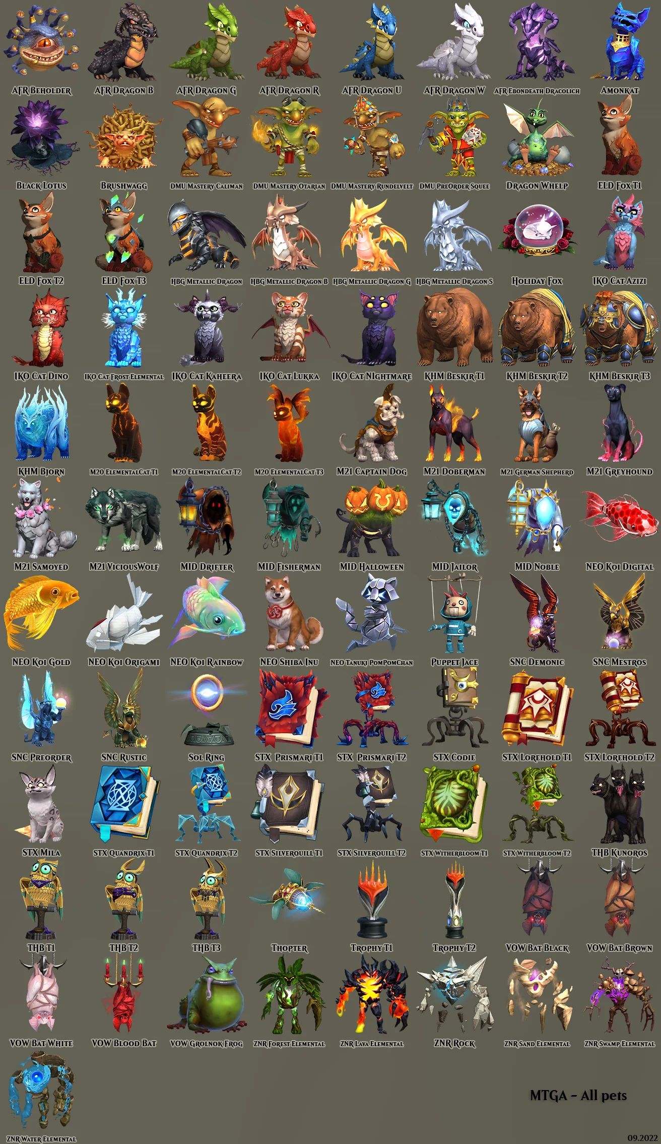 Companions, previously knowns as "pets", are animated creatures or objects that can be used as a cosmetic on the playing table. They can be seen, and interacted with, on the battlefield. They do not impact gameplay or provide any kind of advantage. Most companions can be acquired through the Mastery Pass, with each new set providing new companions. Your companions is placed on the left and side of the playing field, and your opponent's companions is seen on the right.
