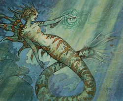 The reclusive jalpari are the merfolk of Avishkar. The Phyrexian Invasion roused them from the depths.[7]