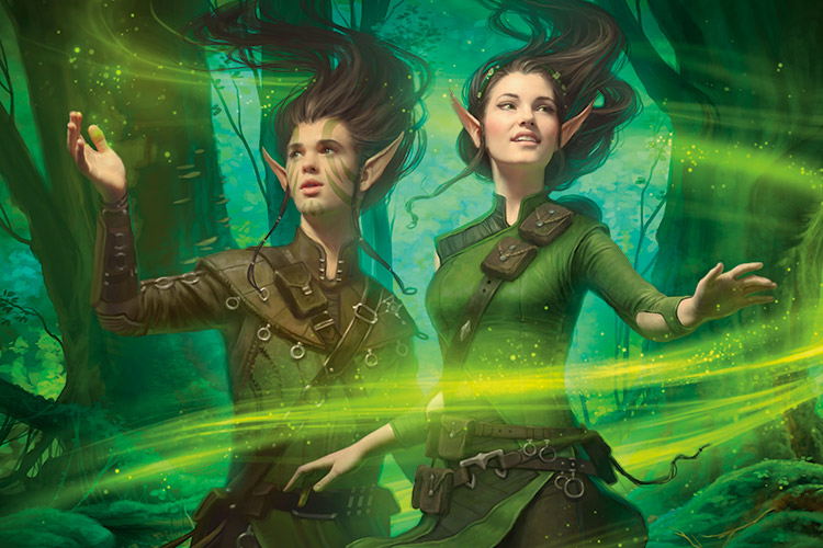 With her newfound second chance, Nissa rationalized that it was for the best that her gifts lay dormant and that it was much more fulfilling to fit in with her kinsmen than to explore her abilities. Soon after she joined her new tribe, she underwent the Joraga ceremony to become an adult, eating an extremely poisonous mushroom that would stop her heart and poison her blood against vampires. She lived and earned both her stem sword staff and a place amongst her people. She sought to live her life to exemplify the Joraga ways, and very quickly she gained recognition for her adherence to her people's culture. So great were her contributions that her tribe offered her the rites to become a leader of the Joraga Council. The rite would, unfortunately, once again send her away from her beloved lands, to live and learn amongst the other elven nations of Zendikar. Nissa chose to go further than that and turned to the endless nations of the Blind Eternities.