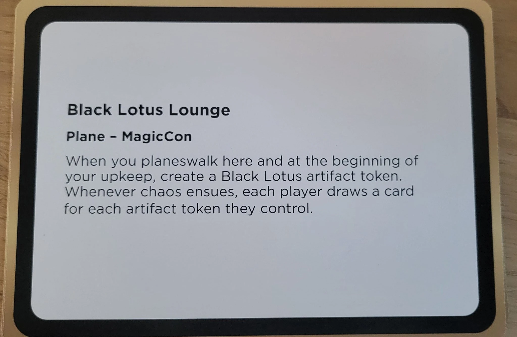Black Lotus Lounge | MagicCon | When you planeswalk here and at the beginning of your upkeep, create a Black Lotus artifact token. Whenever Chaos ensues, each player draws a card for each artifact token they control. |
