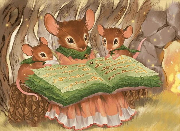 Rosalyn, Foggy and Pip are the mousefolk children of Mabel and Clem, living in Goodhill on the plane of Bloomburrow.