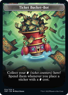 Tickets are a new resource counter. To use ability- and power/toughness stickers you need to pay a ticket cost.[32]